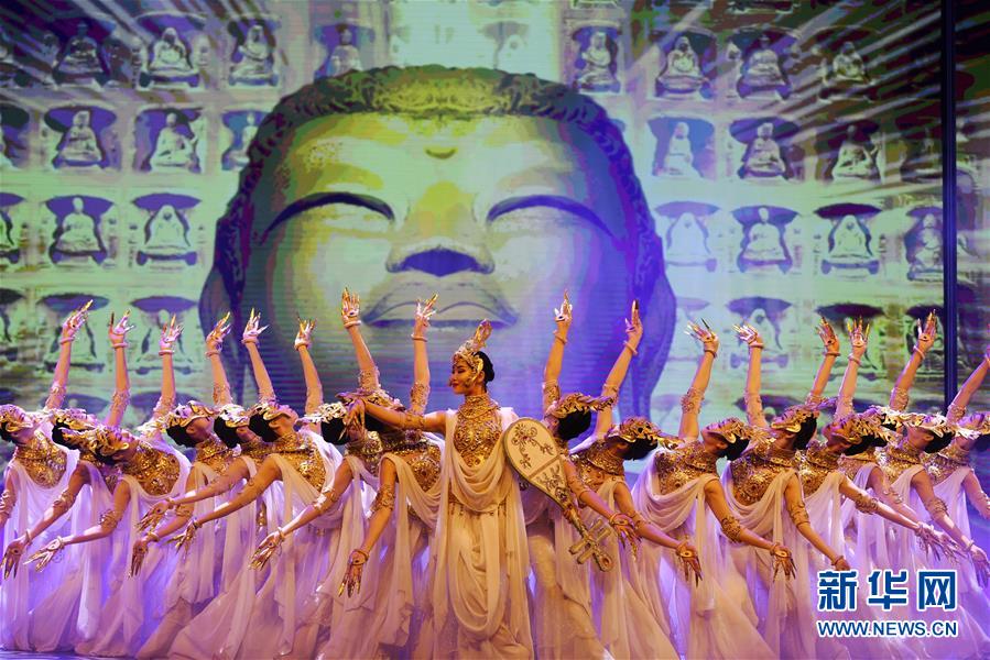 演員在敦煌飛天劇院表演舞劇《絲路花雨》(11月28日攝)。 敦煌記錄歷史。開放的胸襟,曾讓這里成為古代絲綢之路上“華戎所交一都會”。 時(shí)隔千年,改革開放的春風(fēng)吹入西北內(nèi)陸小城,敦煌再度成為中國對外開放的文化前沿。 新華社記者 陳斌 攝