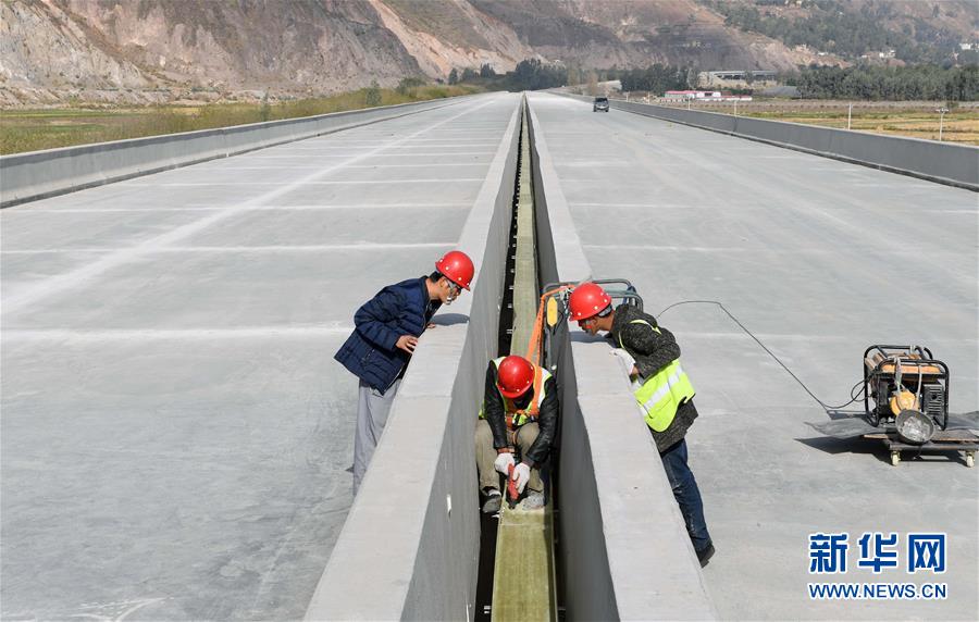 12月15日,中鐵上海局集團(tuán)公司的施工人員在東格高速公路土建項(xiàng)目中進(jìn)行橋面附屬工程作業(yè)。