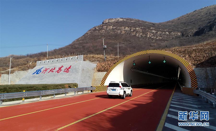 12月16日,一輛汽車行駛在京秦高速公路二期工程河北玉田境內(nèi)的鳳凰頂隧道路段(無人機拍攝)。