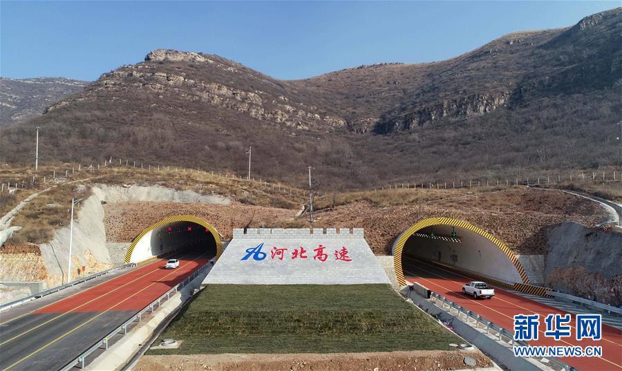 12月16日,一輛汽車(chē)行駛在京秦高速公路二期工程河北玉田境內(nèi)的鳳凰頂隧道路段(無(wú)人機(jī)拍攝)。