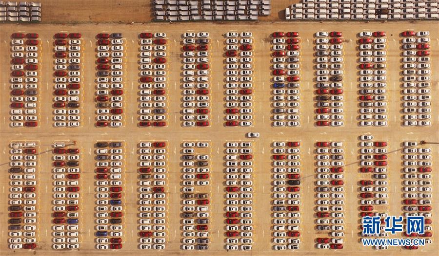 2018年8月20日,重慶果園港內(nèi)停放著等待運輸?shù)钠嚒?大地之色,俯仰之間;壯美山河,是我的祖國。2018年,新華社記者操縱無人機“飛閱”華夏大地,在最美的時節(jié),定格下她的色彩斑斕。 新華社記者 王全超 攝