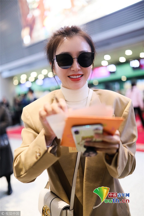 2018年12月11日,上海,秦嵐現(xiàn)身機(jī)場(chǎng)。她穿淺西裝配高領(lǐng)毛衣溫暖又時(shí)尚,梳丸子頭清新減齡,機(jī)場(chǎng)獲粉絲送告白信,嬌羞嘟嘴賣萌少女范十足。