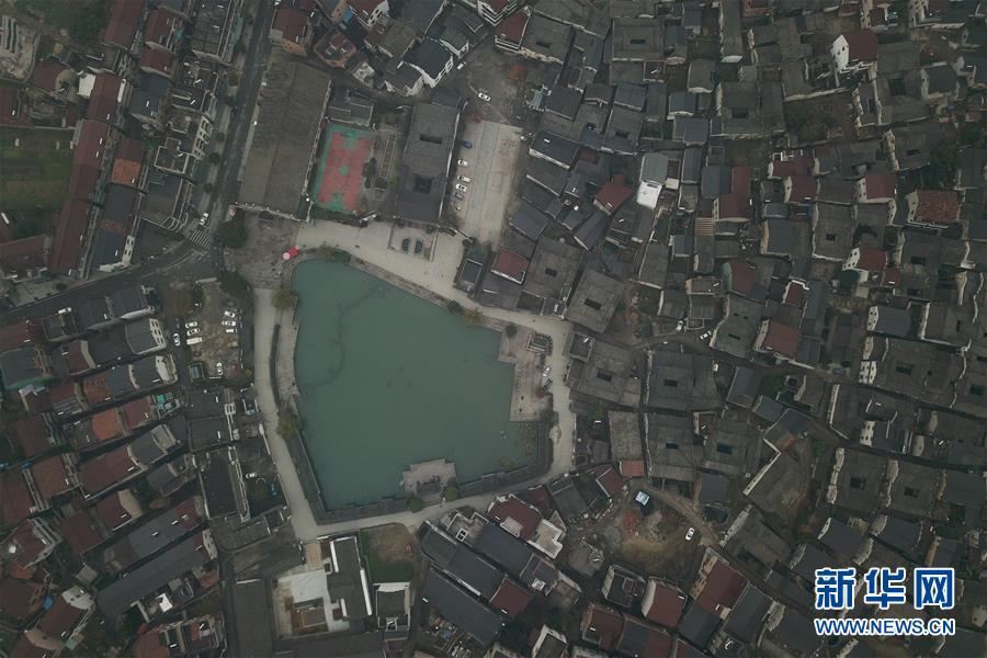 12月21日無人機(jī)拍攝的桐廬縣江南鎮(zhèn)深澳村。深澳村有保存完整的古建筑群落,常年吸引大批游客參觀。新華社記者黃宗治攝