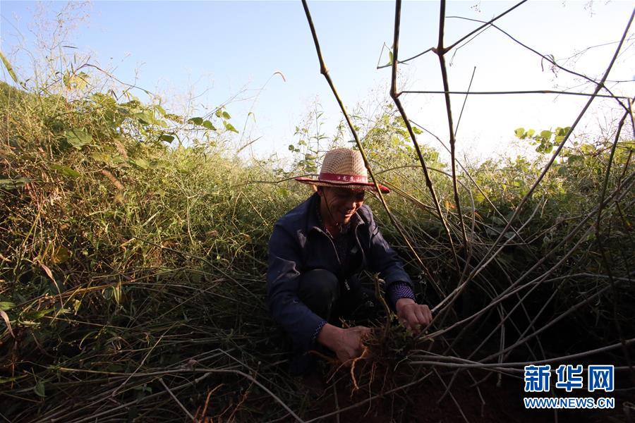 舒港發(fā)在自家田地給楊梅樹除草(10月27日攝)。
