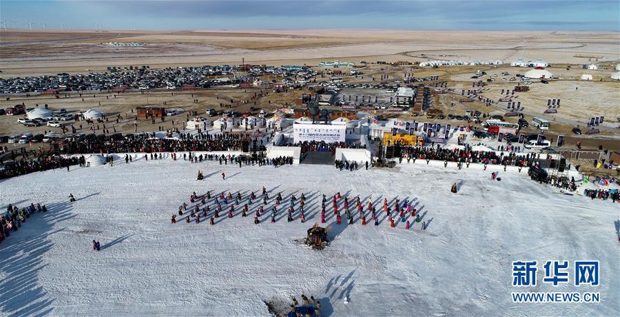 這是12月23日用無人機拍攝的冰雪那達慕開幕式現(xiàn)場。 當日,第十六屆內蒙古冰雪那達慕在呼倫貝爾市開幕。牧民們歡聚一堂,熱情歡迎來自各地的游客,共同參與豐富多彩的民族文化系列活動。 新華社記者 達日罕 攝