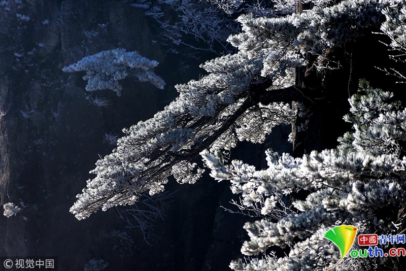 安徽黃山現(xiàn)霧凇景觀