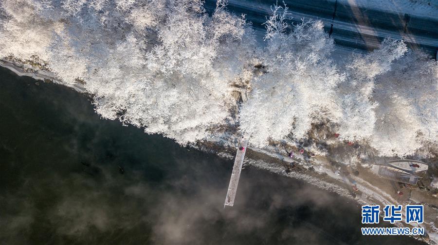 當日,吉林省吉林市出現(xiàn)霧凇景觀,松花江畔的樹木仿佛披上了銀色盛裝。