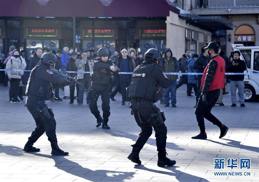 12月25日,市民觀看處置突發(fā)事件演練。 當日,北京鐵路公安局、北京市公安局相關(guān)單位、北京火車站、北京急救中心等單位參加的春運安保演習在北京火車站廣場舉行。演習包括處置突發(fā)事件、急救、治安維持、現(xiàn)場疏導等項目,保障春運期間旅客平安出行。 新華社記者 李欣 攝