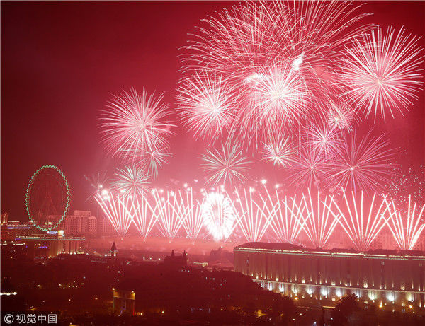 2017年12月31日,臺灣高雄,迎接2018年到來,高雄義大世界今晚涌入十萬人前來跨年,歡送2017,接著于午夜12點(diǎn),施放全臺最長999秒音樂藝術(shù)跨年煙火秀,結(jié)合今年絢爛的燈光特效,搭配特效呈現(xiàn)各種閃耀圖騰,加上引人入勝的情景音樂,絕美驚艷南臺灣的夜空。