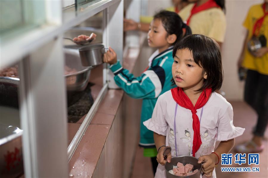 在云南省金平苗族瑤族傣族自治縣者米鄉(xiāng)中心小學(xué),孩子們?cè)谑程么蝻?,?zhǔn)備吃營(yíng)養(yǎng)晚餐(11月13日攝)。新華社記者 胡超 攝