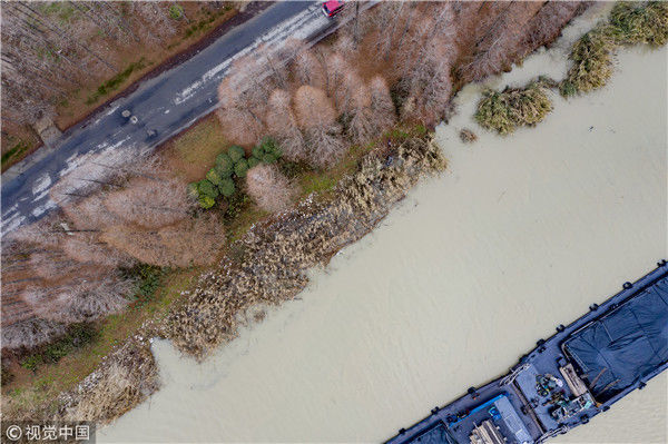 2018年12月27日,江蘇淮安,航拍京杭大運河淮安段冬日景色。