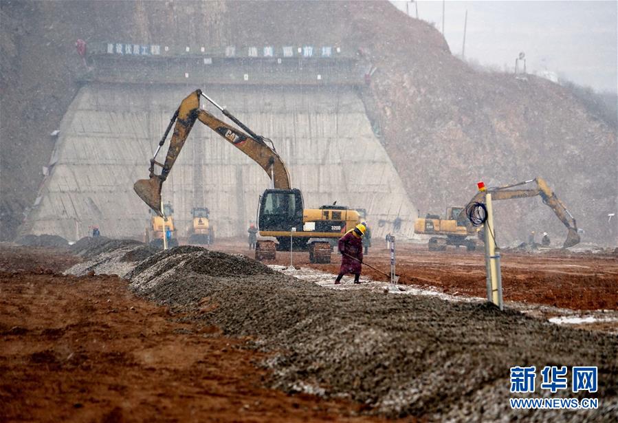 12月27日,工作人員和大型機(jī)械在前坪水庫大壩上施工。目前,被國務(wù)院列為172項節(jié)水供水重大水利工程之一的前坪水庫主體工程建設(shè)進(jìn)度已超八成。該水庫位于河南省汝陽縣前坪村,是一座以防洪為主,兼具供水、灌溉、發(fā)電功能的大型水利樞紐工程。新華社記者 李安 攝