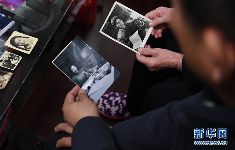 在原“福建前線廣播電臺”廣播員陳菲菲廈門的家中,陳菲菲與臺胞陳清隆在觀看老照片(2018年12月30日攝)。新華社記者 姜克紅 攝