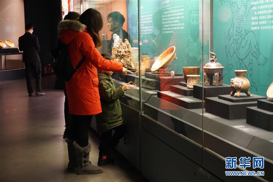 1月1日,觀眾在金沙遺址博物館里參觀跨文明特展展品。 新華社記者康錦謙攝