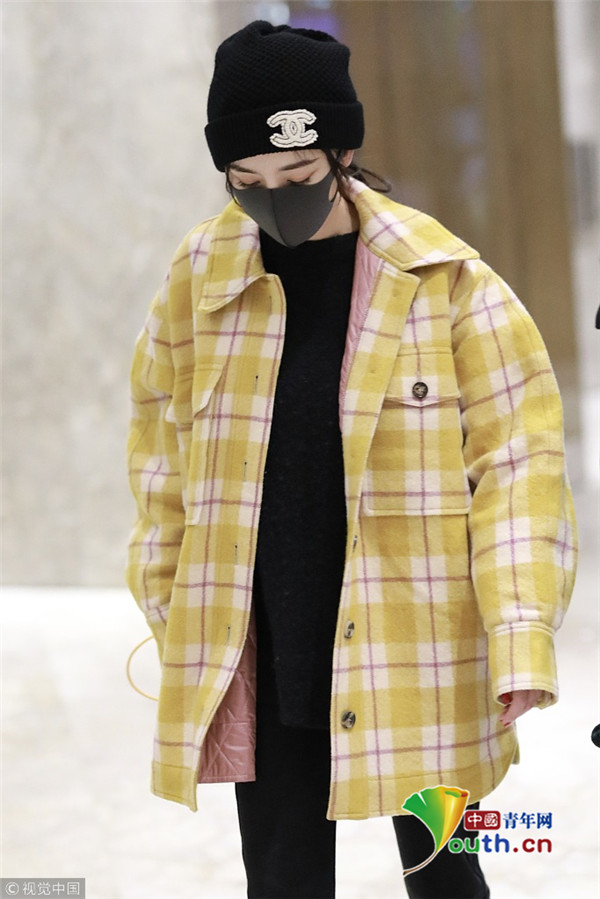 2018年1月6日,上海,楊冪現(xiàn)身某酒店。她戴著帽子口罩,身穿黑色套裝,而外面搭配的奶黃格子外套卻瞬間減齡,明亮又惹眼,無(wú)懼寒冬露著纖細(xì)腳踝,依舊是那個(gè)很會(huì)穿搭的大冪冪。