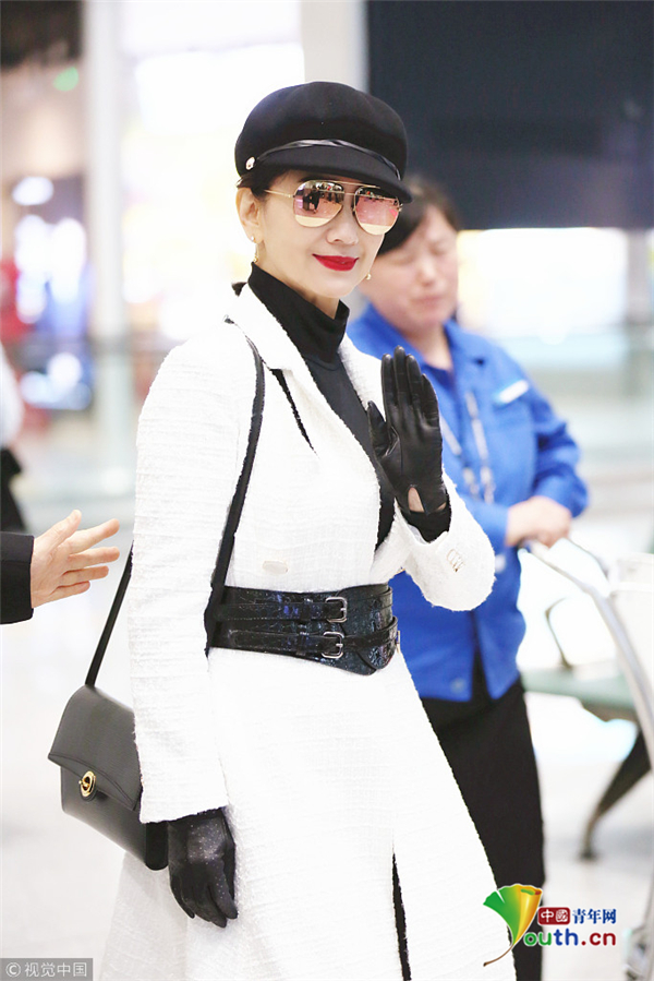 1月10日,廣東省深圳市,趙雅芝夫婦現(xiàn)身深圳寶安機(jī)場(chǎng),頭戴貝雷帽的她架著反光墨鏡,一襲白色不規(guī)則連衣裙配上黑色腰封及皮靴,酷似甜美女教官!