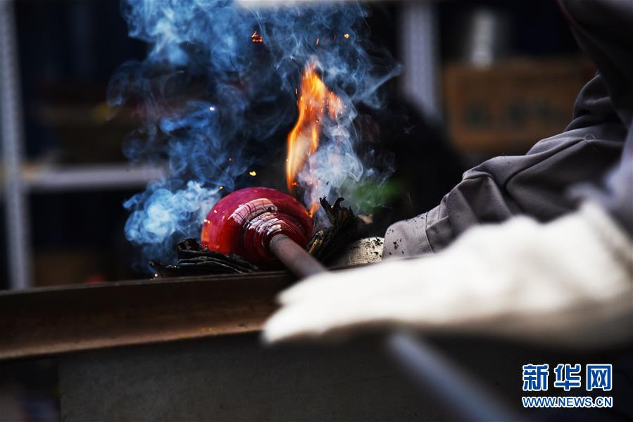 1月12日,孫云毅在制作雞油黃琉璃藝術(shù)品。  新華社記者王凱攝