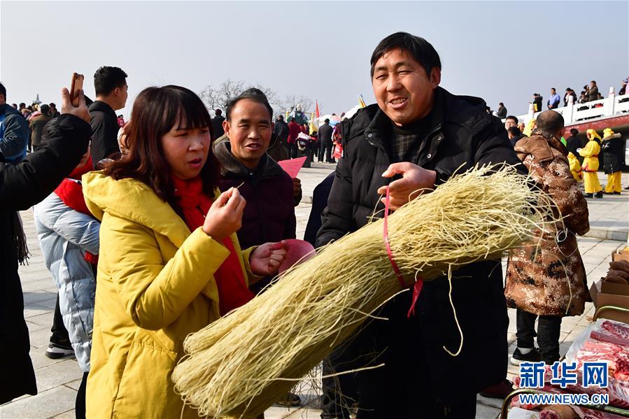 當(dāng)日,河南省魯山縣觀音寺鄉(xiāng)西桐樹(shù)莊村土特產(chǎn)年貨展銷活動(dòng)在河南魯山阿婆寨風(fēng)景區(qū)門口舉行。近年來(lái),依托鄉(xiāng)村旅游的不斷發(fā)展,不少貧困山村特產(chǎn)走出大山。