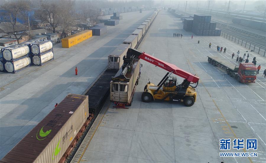 1月14日,工作人員在北京大紅門(mén)站準(zhǔn)備卸貨。 當(dāng)日,從廣西發(fā)出的“年貨”集裝箱班列“百色一號(hào)”抵達(dá)北京鐵路局北京大紅門(mén)站,滿載南方新鮮果蔬、凍海產(chǎn)品的集裝箱將從這里配送到京津冀地區(qū),不僅豐富老百姓的節(jié)日餐桌,也為廣西地區(qū)的特色農(nóng)產(chǎn)品打開(kāi)了北方銷售市場(chǎng)。 新華社記者 邢廣利 攝