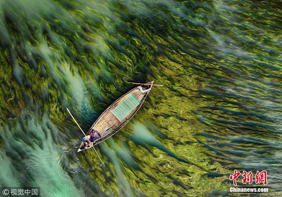 孟加拉國河流清澈見底 漁船暢行水藻間構(gòu)成美麗圖畫