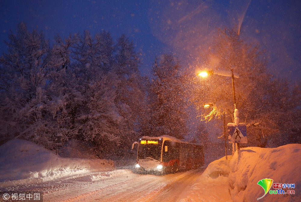 奧地利暴風(fēng)雪持續(xù) 公交車(chē)站被積雪掩埋