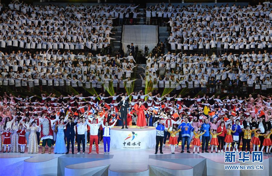 1月15日,演員在開幕式上表演。 當(dāng)日,“2019中芬冬季運(yùn)動(dòng)年”開幕式在北京首鋼冰球館舉行。 新華社記者申宏攝