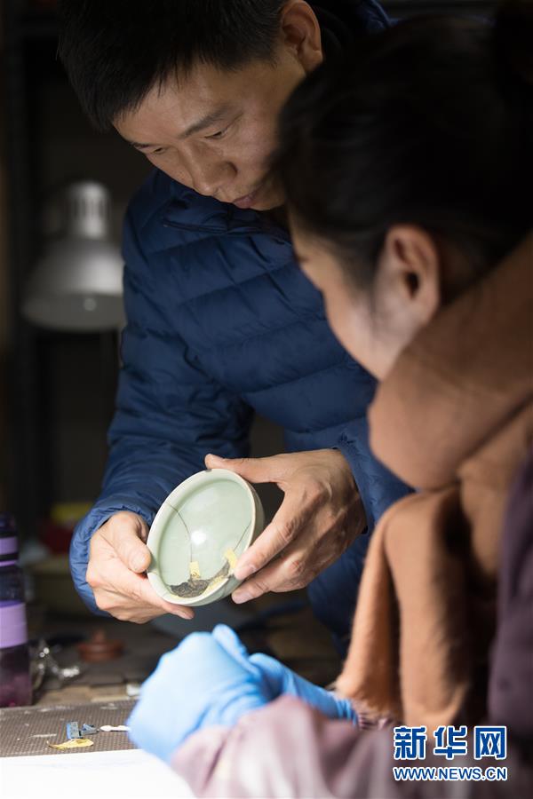 1月15日,在龍泉市牛頭嶺村“七分醉”工作室,吳榮強(qiáng)(左)指導(dǎo)一名徒弟進(jìn)行漆繕。 新華社記者翁忻旸攝