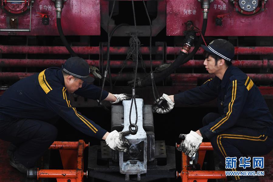 1月16日,重慶機(jī)務(wù)段職工在對(duì)機(jī)車(chē)車(chē)鉤進(jìn)行檢修。 臨近春運(yùn),為確保春運(yùn)旅客和貨物列車(chē)運(yùn)輸安全,中國(guó)鐵路成都局集團(tuán)有限公司重慶機(jī)務(wù)段對(duì)全段機(jī)車(chē)進(jìn)行專(zhuān)項(xiàng)檢查、整修,為即將到來(lái)的春運(yùn)做準(zhǔn)備。 新華社記者王全超攝