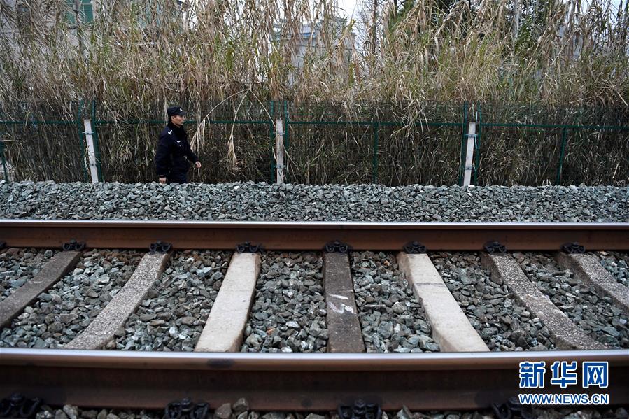 1月16日,汪茂才在巡線途中。 今年52歲的汪茂才是合肥鐵路公安處黃山站派出所歙縣警務室的一名線路民警,他所在的警務室負責皖南山區(qū)皖贛鐵路線約80公里范圍內的線路安全。從警30年來,線路巡查、鐵路安全知識宣傳等是汪茂才的日常工作。多年來的徒步巡線,讓汪茂才練就了一雙快腿,十公里的路,汪茂才兩個小時就能走完。 汪茂才負責的鐵路沿線周邊村莊較多,很多房子都是沿鐵路線而建,有些村民為了圖方便,違規(guī)穿越鐵路線。加強對鐵路沿線居民的安全宣傳教育,成為汪茂才的一項重要工作,沿線村民的安全意識也越來越高。 對汪茂才這樣的線路民警來說,大多數時候都是“獨行俠”,“當線路民警就要耐得住寂寞,守得住孤獨,與大山為伴,與線路為友,盡己所能,為鐵路安全運行保駕護航?!蓖裘耪f。 新華社記者劉軍喜攝