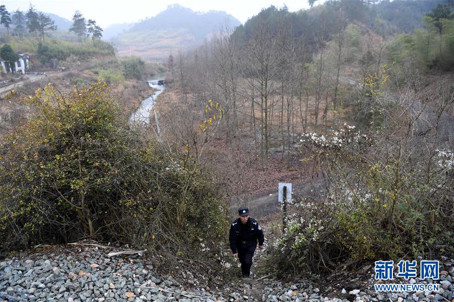 1月16日,汪茂才在巡線途中。 今年52歲的汪茂才是合肥鐵路公安處黃山站派出所歙縣警務室的一名線路民警,他所在的警務室負責皖南山區(qū)皖贛鐵路線約80公里范圍內的線路安全。從警30年來,線路巡查、鐵路安全知識宣傳等是汪茂才的日常工作。多年來的徒步巡線,讓汪茂才練就了一雙快腿,十公里的路,汪茂才兩個小時就能走完。 汪茂才負責的鐵路沿線周邊村莊較多,很多房子都是沿鐵路線而建,有些村民為了圖方便,違規(guī)穿越鐵路線。加強對鐵路沿線居民的安全宣傳教育,成為汪茂才的一項重要工作,沿線村民的安全意識也越來越高。 對汪茂才這樣的線路民警來說,大多數時候都是“獨行俠”,“當線路民警就要耐得住寂寞,守得住孤獨,與大山為伴,與線路為友,盡己所能,為鐵路安全運行保駕護航?!蓖裘耪f。 新華社記者劉軍喜攝