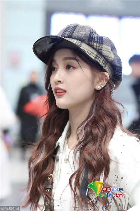 2019年1月17日,北京,吳宣儀現身機場。當晚她不懼低溫輕裝亮相提前過春天,青春裝扮甜美又時尚。吳宣儀側顏精致紅唇吸睛,還被抓拍到撅嘴賣萌一臉無辜的表情。