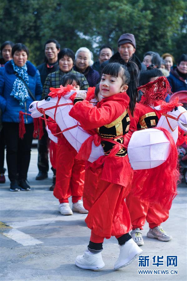 1月16日,孩子們?yōu)樾绿链宕迕癖硌輦鹘y(tǒng)非遺項(xiàng)目——下箬馬燈。下箬馬燈是發(fā)源于長興縣的民間舞蹈,距今已有1000多年歷史。 臨近春節(jié),浙江省長興縣開發(fā)區(qū)中心幼兒園的老師和孩子們來到長興縣太湖街道下屬的新塘村,為村民表演文藝節(jié)目,用喜慶的傳統(tǒng)舞蹈營造節(jié)日氣氛。另外孩子們還用紙盒、瓶子、彩色包裝紙等廢舊物品制作了環(huán)?;?,送給村民,倡導(dǎo)低碳環(huán)保的節(jié)日新風(fēng)。 新華社記者 徐昱 攝
