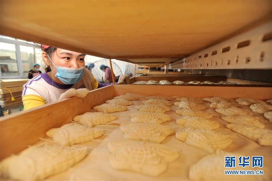 1月31日,河北黃驊市一家面花作坊的工人在查看面花。 河北黃驊市有著過年蒸面花的習(xí)俗。春節(jié)前夕,當?shù)孛婊ㄖ谱鞴S加班加點制作面花,供應(yīng)春節(jié)市場。 新華社記者牟宇攝