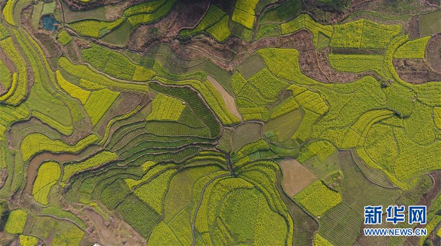 廣西融安縣東起鄉(xiāng)長豐村的田園春色(3月10日無人機拍攝)。 近日,隨著氣溫持續(xù)回升,廣西融安縣境內的油菜花開放,春意盎然。 新華社記者 黃孝邦 攝