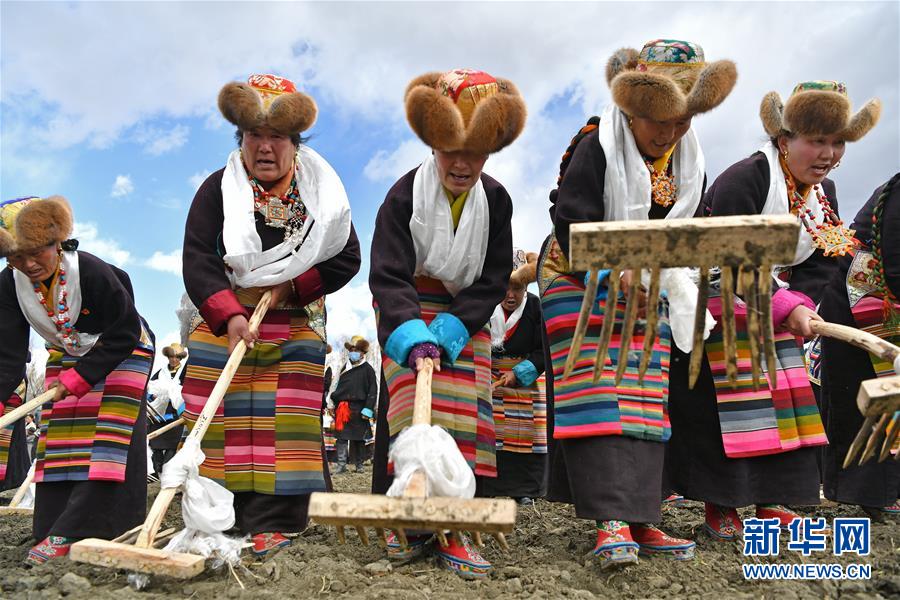 3月16日,山南市乃東區(qū)克松社區(qū)居民在開耕儀式上。 當日,西藏各地男女老幼身著節(jié)日盛裝,駕著一輛輛由彩旗、花朵裝扮一新的拖拉機,涌向待墾的農田,載歌載舞迎來一年一度的開耕儀式。 新華社記者 晉美多吉 攝
