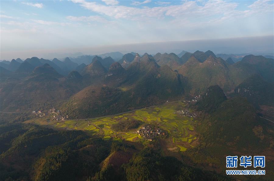 3月20日在貴州錦屏縣新化鄉(xiāng)拍攝的春景(無(wú)人機(jī)拍攝)。春分將至,貴州各地成片的油菜花漸次綻放,如同金色的地毯鋪上云貴高原。 新華社記者 歐東衢 攝