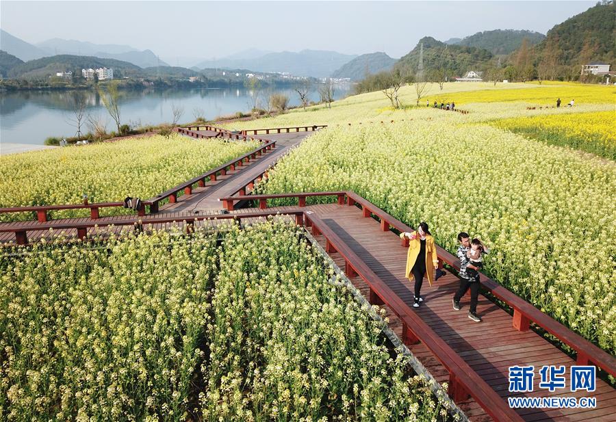 3月19日,游人在下涯鎮(zhèn)油菜花海中游玩(無人機(jī)拍攝)。近日,浙江省建德市下涯鎮(zhèn)油菜花盛開,吸引不少游客前來踏春。 新華社記者翁忻旸攝