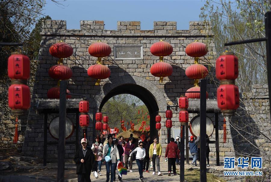 3月31日,游客在上九山村入口處游覽。山東省鄒城市石墻鎮(zhèn)上九山村始建于宋代,是一座依山而建的石頭村,有明清建筑風(fēng)格的古民居300余套,古樸傳統(tǒng)的村貌吸引眾多游客。2019年1月,上九山村入選第七批中國(guó)歷史文化名村。 新華社記者 王凱 攝