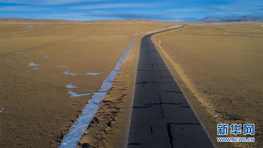 這是通往藏北雙湖縣的公路(1月30日無人機拍攝)。新華社記者 普布扎西 攝