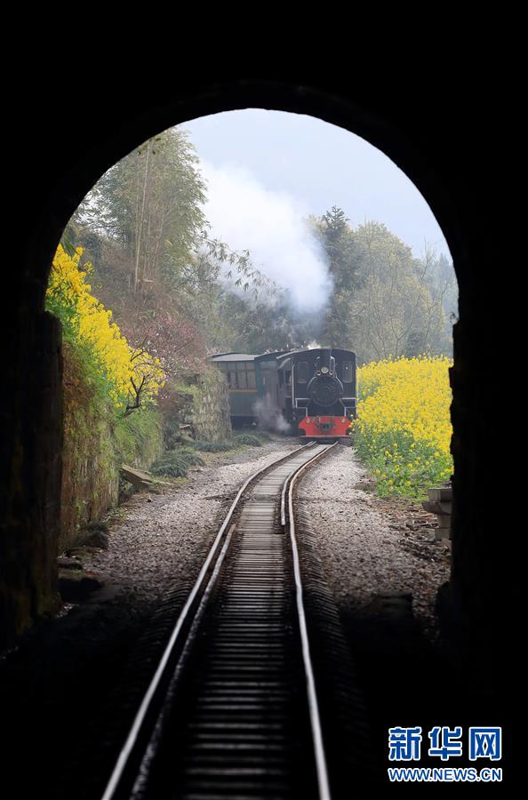 3月20日,一列嘉陽(yáng)小火車經(jīng)過(guò)老鷹嘴段。