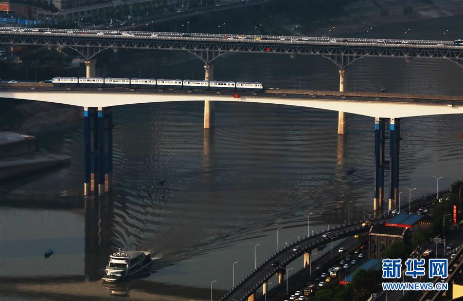 這是4月8日拍攝的重慶城市立體交通景象。 千里為重,廣大為慶。城在山水間、山水在城中,重慶頗具特色的立體城市景觀是城市靚麗的名片。 新華社記者 王全超 攝