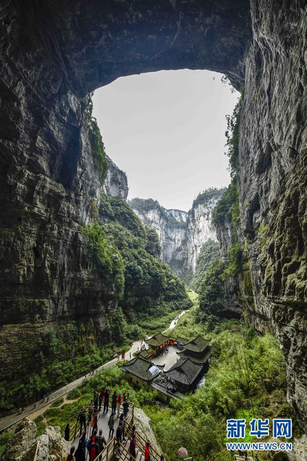 游客在天生三橋景區(qū)內(nèi)的天龍橋景點(diǎn)游覽(3月27日攝)。 隨著天氣轉(zhuǎn)暖,重慶武隆天生三橋景區(qū)風(fēng)景如畫,氣勢磅礴的天生石橋和綠意盎然的山林相映成趣,吸引眾多游客前來踏春賞景。 新華社記者劉潺攝
