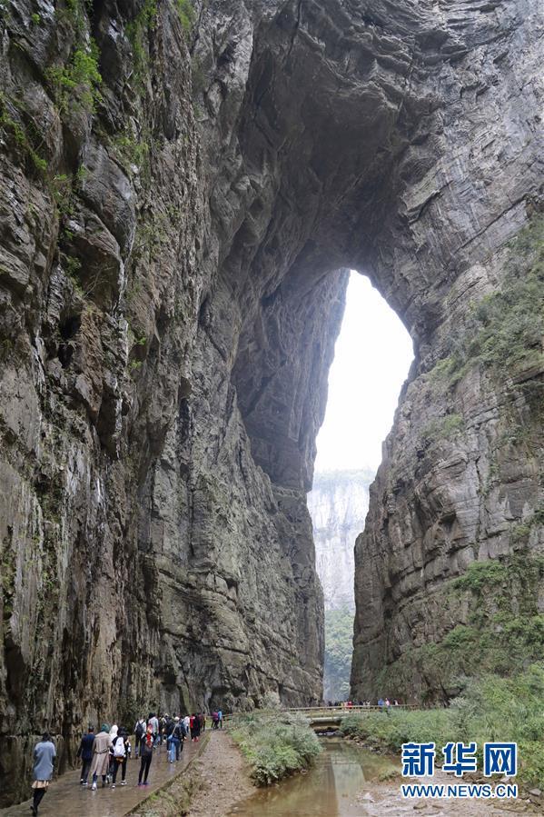 游客在天生三橋景區(qū)內(nèi)的青龍橋景點(diǎn)游覽(3月27日攝)。 隨著天氣轉(zhuǎn)暖,重慶武隆天生三橋景區(qū)風(fēng)景如畫,氣勢(shì)磅礴的天生石橋和綠意盎然的山林相映成趣,吸引眾多游客前來踏春賞景。 新華社記者劉潺攝