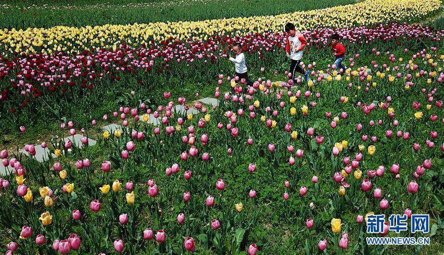 4月14日,游客在位于湖北省十堰市茅箭區(qū)的秦巴生態(tài)植物園內(nèi)游玩。近日,位于湖北省十堰市茅箭區(qū)的秦巴生態(tài)植物園內(nèi),200萬株郁金香競相開放,吸引游客前來賞花游覽。 新華社記者 程敏 攝
