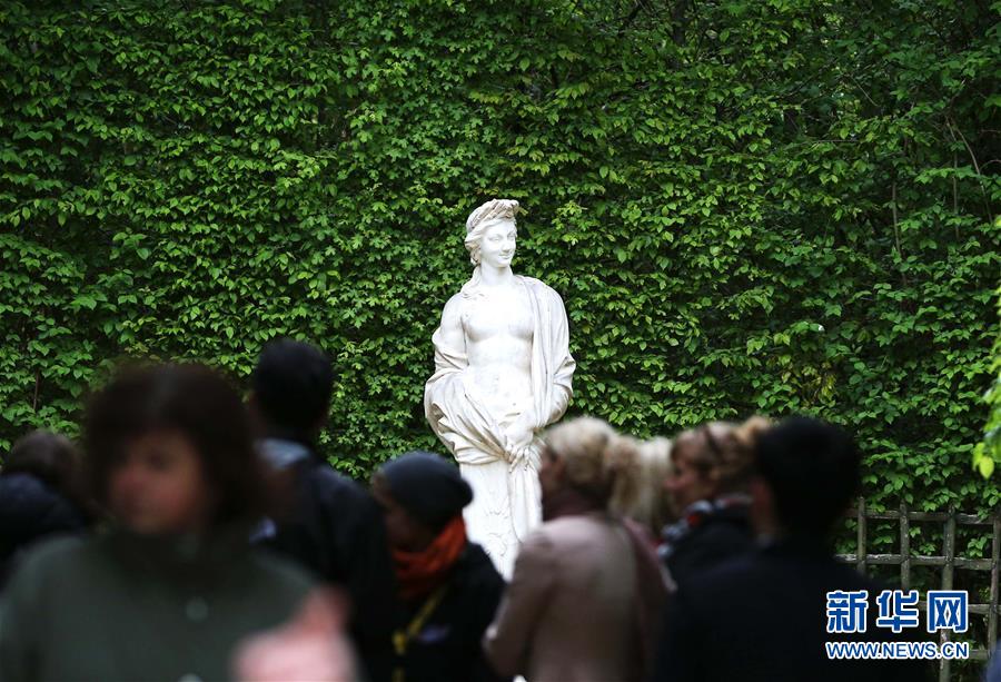 這是4月25日在法國巴黎近郊拍攝的凡爾賽花園內(nèi)的雕塑。 新華社記者高靜攝