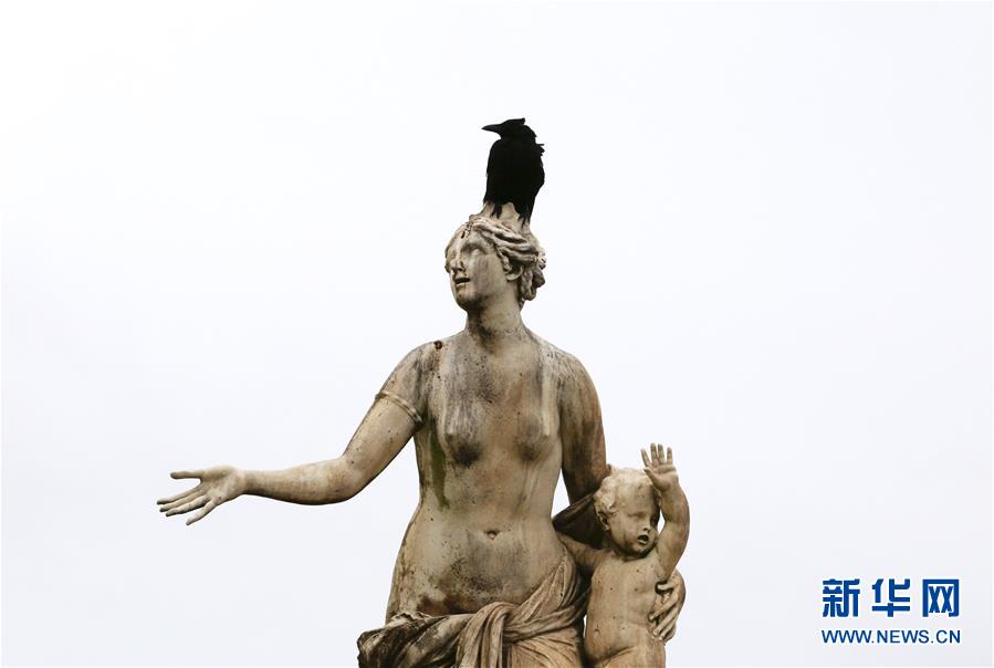 這是4月25日在法國巴黎近郊拍攝的凡爾賽花園內(nèi)的雕塑。新華社記者高靜攝