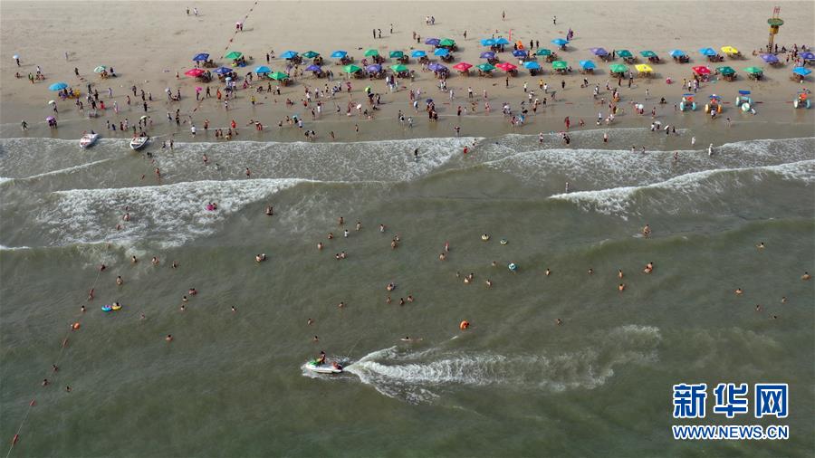 眾多游客在北海銀灘游玩(4月16日無(wú)人機(jī)拍攝)。新華社記者張愛林?jǐn)z