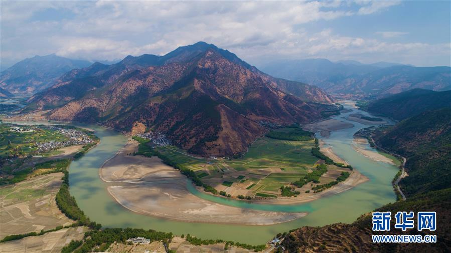 這是無(wú)人機(jī)拍攝的“長(zhǎng)江第一灣”(3月17日攝)?!伴L(zhǎng)江第一灣”位于云南省麗江市玉龍納西族自治縣石鼓鎮(zhèn),萬(wàn)里長(zhǎng)江從青藏高原奔騰而下,與瀾滄江、怒江一起在橫斷山脈的高山深谷中穿行形成并流的壯麗景觀。金沙江在麗江石鼓鎮(zhèn)突然以急轉(zhuǎn)彎轉(zhuǎn)向東北,形成一個(gè)宛若“V”字形的大轉(zhuǎn)彎,得名“長(zhǎng)江第一灣”。春日里,“長(zhǎng)江第一灣”江水青碧,美景迷人。 新華社記者胡超攝