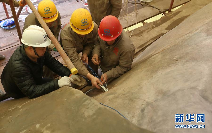 工人在搭建腳手架(10月19日攝)。圖中下方顯示,大佛腳趾有明顯的破損。 經(jīng)過17天緊張施工,10月25日下午,正在“體檢”的樂山大佛腹部以下的腳手架搭設(shè)完畢,這表明大佛“體檢”已觸達胸腹部及頭部等核心區(qū)域。 新華社記者張超群攝