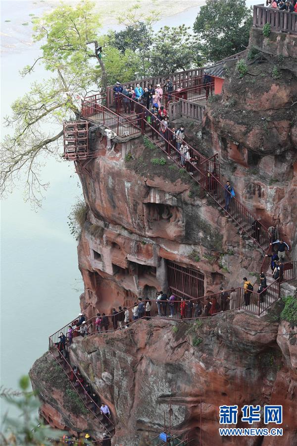 4月1日,樂山大佛景區(qū)的九曲棧道重新對游客開放。新華社記者 江宏景 攝